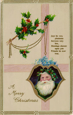 | An Edwardian era Christmas card with no religious references but with an image of Santa Claus |